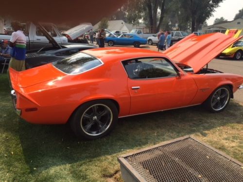 1970 RS Camaro. Split bumper, Twin-turbo, 5.3 motor, new paint, new interior and new carpet, new gauges package, new 700R4 transmission,also new converter, new glass, electric windows, front and rear willwood brakes and rotors, 12 bolt, 373 gears, tubular A arms. Car has 200 miles on it since rebuilt.
