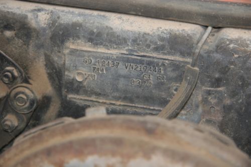 The engine that was found in the car was a two bolt main 327 which appeared to be a replacement drop-in from 1968 if I recall correctly. That is what is still in the car.