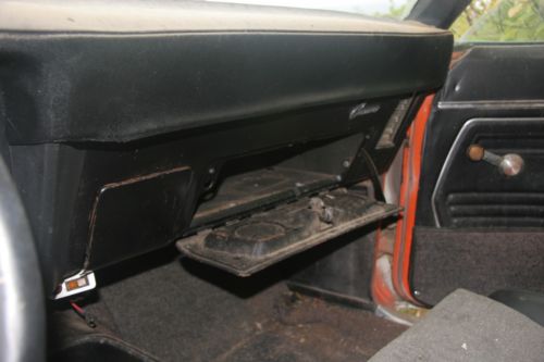 This vehicle was purchased in Tucson, AZ in 1982. It had a non-cowl induction hood, (with a hole burned in it) but that appeared to be a replacement. The 302 hood emblems were found in the vehicle. The car has front disk brakes, remote (driver’s) mirror, 12 bolt rear end (3.08 as I recall), multi-leaf rear springs, 4 spd (Muncie), tach, Endura front bumper, etc. It appears to have quick ratio power steering but uncertain. The console was broken and the gauge pack was missing, so what is seen in the car is a ‘Cuda console as that is what I could find at the time. I don’t know if the tach has been replaced with the gas gauge cluster due to the missing gauge pack or if it was original. If so, it wasn’t a Z28.