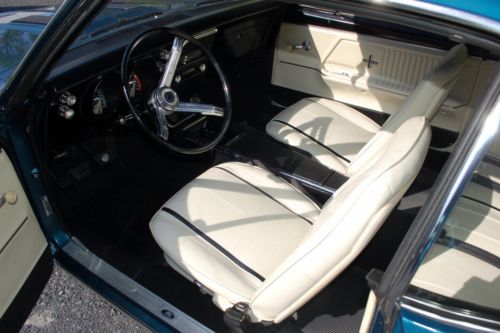 This example is equipped with the Deluxe Interior (Z87), featuring white vinyl seats and black piping. All of the glass is original.