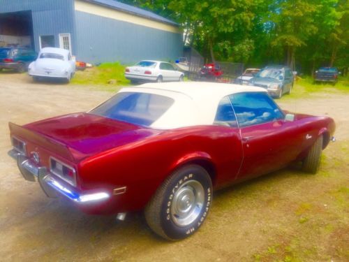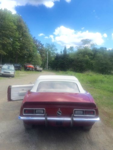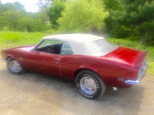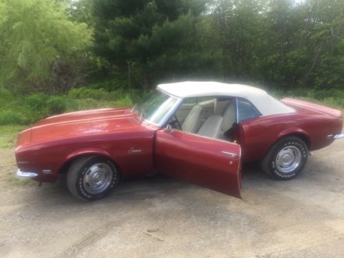 Chevrolet Camaro with 327 c.i. original motor; runs well with good power. Good convertible top, tires and paint. Negligible rust as car is from North Carolina. Minor scratch and peeling seen in pics.