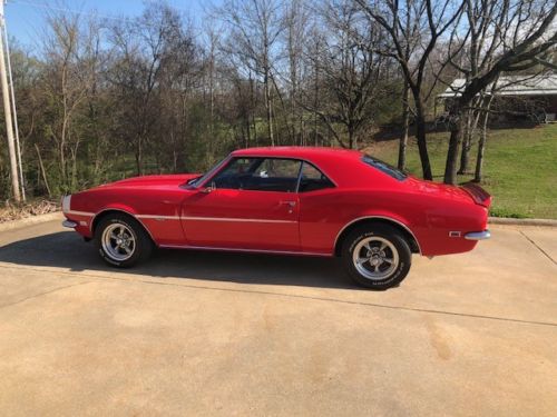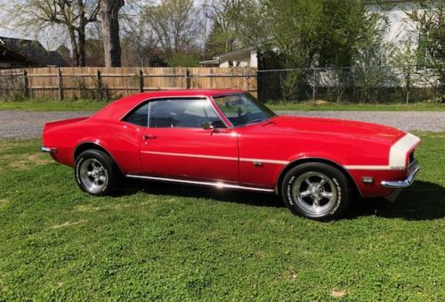 UP FOR AUCTION IS A BEAUTIFUL 1968 CHEVY CAMARO SS CLONE. IVE OWNED THIS CAR FOR AROUND 7 MONTHS AND DRIVE IT TO THE GYM EACH SATURDAY AND TO LOCAL CAR SHOWS. IT RIDES AND DRIVES GREAT. THE VEHICLE IS EQUPPED WITH A STRONG RUNNING 327 CHEVY V8 ATTACHED TO A TH 350 AUTO. TRANSMISSION. THE MOTOR WAS BUILT BY PREVIOUS OWNER. HAS NEW CERAMIC COATED HEADERS AND NEW 2-1/2 " EXHAUST WITH FLOWMASTER MUFFLERS. IT HAS A NICE CAM THAT GIVES IT A NICE HOT ROD SOUND. HAS EDELBROCK ALUMINUM INTAKE AND CARB. NEW RADIATOR. THE ENGINE COMPARTMENT IS SHOW QUALITY WITH NUMEROUS CHROME DRESS UP ITEMS. THE CAR HAS NO MECHANICAL ISSUES AND STARTS, RUNS, DRIVES, AND STOPS LIKE IT SHOULD. ALL GAUGES AND LIGHTS WORK AS THEY SHOULD. RADIO DOESNT COME ON. THE UNDERCARRIAGE IS SOLID AND CLEAN . CAR SHOWS AROUND 94,500 MILES WHICH IM SURE ISNT ACTUAL. THE CAR IS EQUIPPED WITH TRI-SPOKE WOOD STEERING WHEEL. THE CAR IS EFFORTLESS TO DRIVE AND GETS PLENTY OF LOOKS AND ATTENTION. THE MIRROR FINISH PAINT IS SHOW QUALITY AND THE LINES ARE STRAIGHT AS AN ARROW. THE INTERIOR IS SHARP AND LOOKS AS NICE AS THE OUTSIDE, NO RIPS OR TEARS. NEW FLOOR MATS. TIRES ARE NICE. THIS CAR IS BEAUTIFUL! HAS A B&M SHIFTER. THE ONLY FLAW THAT I HAVE NOTICED IS A SMALL DENT IN THE CHROME TRIM THAT GOES AROUND THE WINDSHIELD . I HAVE A NEW IN BOX SET THAT WILL GO WITH THE CAR. CAR CAN BE DRIVEN ANYWHERE. I HAVE THE OLD OHIO TITLE THAT CAME WITH THE CAR WHEN I BOUGHT IT. MY STATE OF ALABAMA ONLY REQUIRES A BILL OF SALE, AND THE BILL OF SALE IS WHAT I WILL SIGN OVER TO THE NEW OWNER. CAR IS SOLD AS-IS. IMMEDIATE DEPOSIT OF $1,000. THE REMAINING BALANCE CAN BE BANK DRAFT, CASHIERS CHECK, CASH IN PERSON. CAR WILL SHIP WHEN FUNDS CLEAR. BUYER IS RESPONSIBLE FOR SHIPPING. PLEASE DO NOT BID IF YOU HAVE ZERO FEEDBACK. I CAN MEET AT ANY TIME WITH ANYONE THAT WANTS TO INSPECT THE CAR. IT IS LOCATED IN ROGERSVILLE ALABAMA WHICH IS IN THE NORTHWEST CORNER OF ALABAMA.