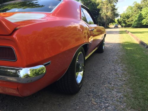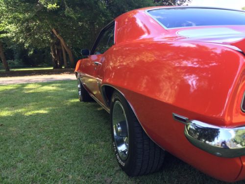 Three owner 1969 Chevrolet Camaro Z28 is one of the nicest around. Period Correct car which was restored by previous owner. A great daily driver, or show it locally. Either way it will not disappoint. Current owner has had it for 7 years. Only selling to prepare for college costs for children. Factory correct code 72 Hugger Orange paint with white racing stripes, and code 713 Houndstooth interior. 302 solid lifter V8 motor (engine block casting code 3956618) which was rebuilt (and decked by previous owner) and a 4 speed Muncie manual transmission (not original numbers matching) with Hurst shifter. Front disk brakes, rear drum brakes. Super straight body (original panels and rust free) and clean interior. Paint is good. All of the gauges in the dash and console work (including the AM radio). New BF Goodrich tires all the way around. 12-bolt rear axle with positract 4.10 ratio (BV Code). Third party inspections welcome and questions encouraged. Car runs, drives and sounds excellent. This car is listed in multiple publications, and for sale locally, so I must reserve the right to end the auction early. Not interested in trades.