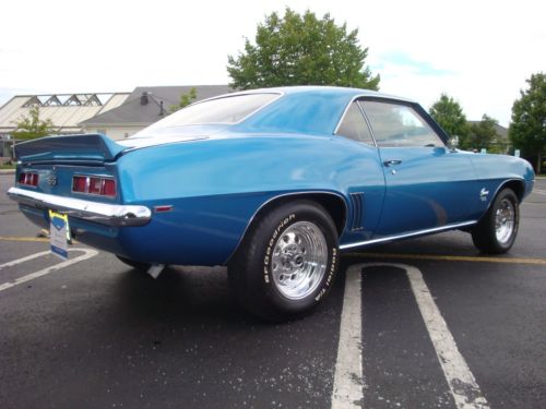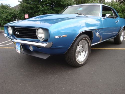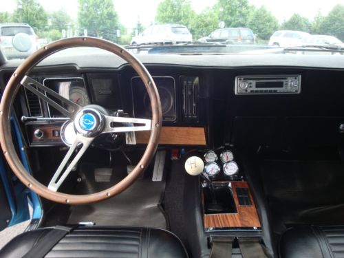 PROFESSIONALLY PAINTED IN 2008 WITH PPG BASE COAT, CLEAR COAT URETHANE, LEMANS BLUE STOCK 1969 COLOR ( CAR ORIGINALLY FATHOM GREEN WITH GREEN INTERIOR ). ALL NEW BLACK INTERIOR INCLUDES HEADLINER, SAIL PANELS, BUCKET SEATS AND REAR SEAT STOCK VINYL 69 COVERS, SEAT BACKS, DOOR PANELS, RUGS, DASH PAD, CONSOLE, PACKAGE TRAY, INTERIOR PAINTED BEFORE ASSEMBLY. CAR BUILT 3RD WEEK SEPTEMBER 1969 FROM VIN SEQUENCE NUMBER. CAR HAS CLEAR NEW JERSEY TITLE WITH ODOMETER 13509 MILES, odometer now shows 13755. Do not know if first time around?? New means 2003-2008 for most items, with exception of recent updates, garage kept since restoration and NEVER WASHED WITH A HOSE SINCE RESTORATION OR DRIVEN IN RAIN. NEW JVC CD STEREO WITH REMOTE, REMOVEABLE FACE, NEW ALPINE 6x9 REAR SPEAKERS, AND ELECTRIC RETRACTABLE ANTENNA. DID NOT CUT DASH FOR RADIO.