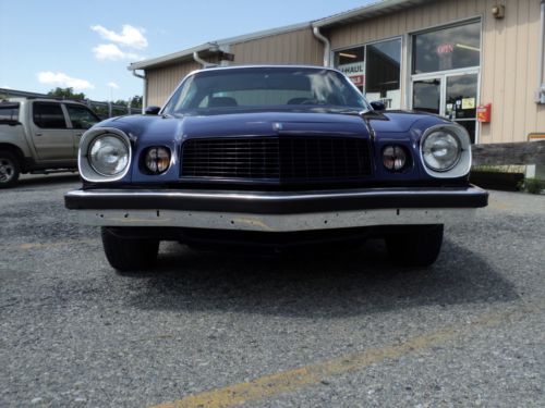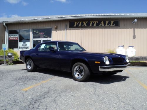 After a summer of checking out cool cars at shows this is a great example of a completely restored car for a fantastic price. By the time you find a car half as solid and put in the work required, inside and out, you will spend twice as much. I'm in the upholstery side of restoring so this is all done for you. These seats are out of an Avenger because they sit nice and low with many manual adjustments with black leather seating, tan leather piping and alligator leather accents. Factory pattern rear seats with Tan leather seating, black leather piping and alligator leather accents. Door panels are also factory pattern black vinyl with black fabric, tan leather piping and alligator accents. Headliner is tan fabric ( sun roof does not leak) and carpet is new with custom carpet mats. Everything else is factory, painted or covered. The unibody, floor pans and trunk pan are all solid! The body is all metal (factory or replaced) and the hood is GM factory original.This has a 350CI Chevy engine out of a 1977 Z-28 with 350 turbo transmission and 10 bolt rear. The tires and rims are original 14" and the rear shocks are new. This summer the average selling price for this style Camaro in this condition was $12,700.00. My starting price says it all. I need the room in my shop for upcoming winter projects.