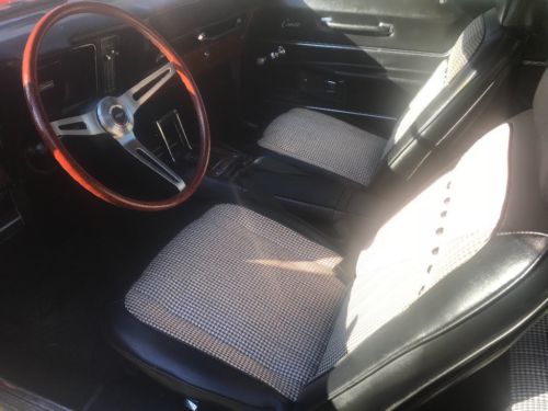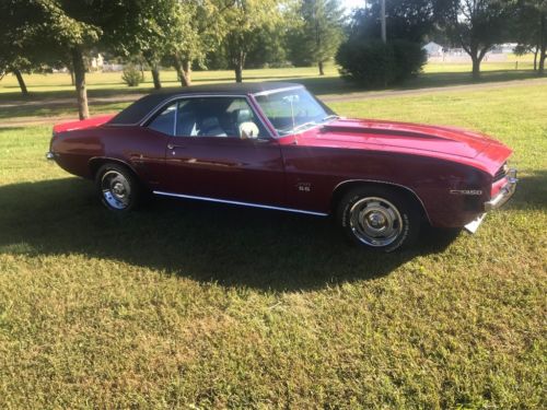 This is real nice ss camaro it’s true x11 it is true garnet red color with houndstooth interior with wood grain dash tilt wheel it has 12 bolt rear end disc brakes p/s p/b new b/f tires the engine is a 350 / 300 engine but not original engine the gentleman I got from it said it a 69 model engine also that original mileage on the car he had owned this car for 8yrs the paint is 8/10 you can drive this anywhere you can fly in and drive it home as far as I can tell it looks original Metal in the car my number is 270-202-0942 Richard
