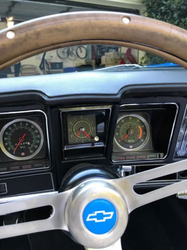 Has a professionally built 454 under the hood. KB pistons, Moly rings, crane roller cam: Lift .546, duration 232, Comp Cams roller lifters, roller rockers, Edelbrock aluminum intake and aluminum heads -- pocket porting, 2.190 intake valves, 1.9 Exhaust valves, Compression = 9.50:1, Holley 870 Street Avenger carb, dyno'd over 500 HP. Ceramic headers and new 14” magnaflow exhaust. 700R4 auto transmission with shift kit, locking torque converter, and overdrive. 12 bolt posi rear end with 3.73 gears. Professional upgrade to electrical system with heavier gauge custom wiring and modern high-output alternator, relay for upgraded HEI ignition, and conversion for external starter relay and 00 cables.