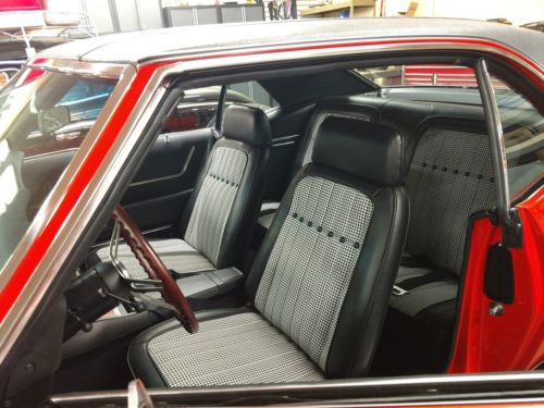 * Interior: All new parts including door panels, rear side panels, seat foam, headliner, sun visors, dash pad, rear package shelf, carpet, pillar post moldings, door sill plates, complete weather stripping kit, door handles, door jamb vent grilles and beautiful Hounds Tooth Interior.