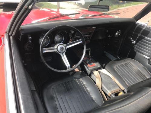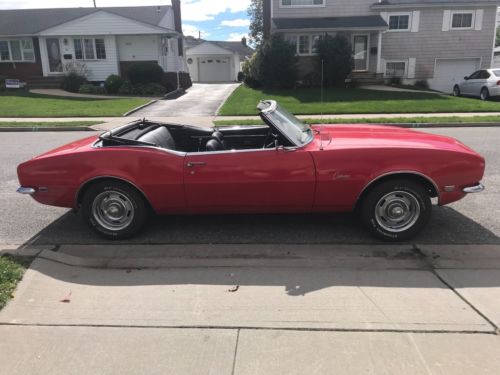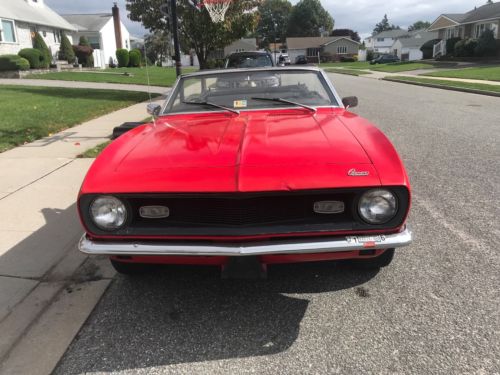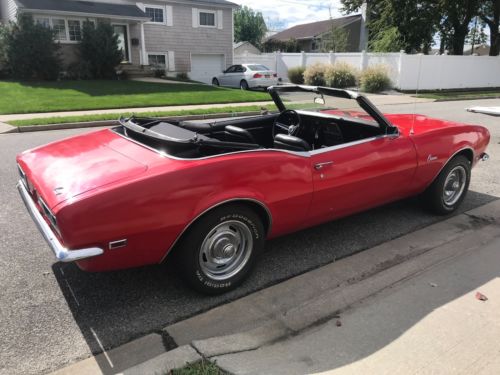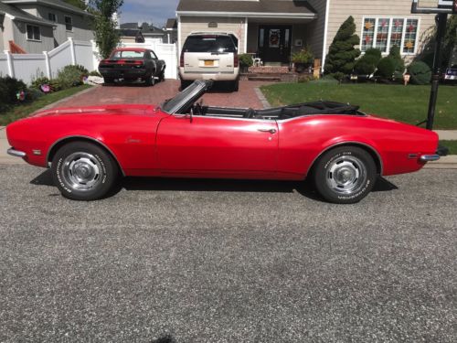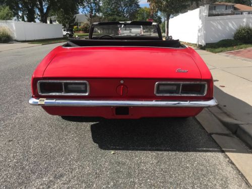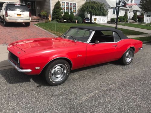 I'M SELLING MY 1968 CAMARO CONVERTIBLE THAT RUNS AND DRIVES VERY NICE. THIS CAR HAS 53000 ORIGINAL MILES AND IS ALL STOCK EXCEPT FOR THE RALLY WHEELS AND RADIO THAT SOUNDS VERY NICE. IT HAS A NEW TOP THAT IS POWER. THE INTERIOR IS VERY NICE BUT NEEDS A NEW FRONT CARPET. THE BODY IS VERY SOLID AND STILL HAS IT'S ORIGINAL QUARTERS AND ALL FOUR COX-TAIL SHAKERS. I PURCHASED THIS FROM AN OLDER GENTLEMAN WHO PURCHASED IT FROM THE ORIGINAL OWNER. THE FLOORS, REAR FRAME RAILS, ROCKERS AND UNDER SIDE IS VERY CLEAN AND NICE AS YOU CAN SEE IN THE PICTURES. YOU CAN JUMP IN THIS CAR AND DRIVE IT ANYWHERE WITH OUT ANY WORRIES!! EVERYTHING IN THIS CAR WORKS BUT THE GAS GUAGE, I THINK IT'S A BAD GROUND! EVEN THE DOOR BUZZER WORKS! THE PAINT IS AN OLD MACO PAINT JOB SO IT COULD USE A NICER PAINT JOB. IT STILL LOOKS GOOD BUT MACO PAINT JOBS ARE VERY CHEAP! I DON'T WANT TO MAKE THIS CAMARO MORE THAN WHAT IT IS!! BUT IT IS A GREAT STOCK ORIGINAL READY TO DRIVE 1968 CAMARO CONVERTIBLE!! I'M SURE I'M FORGETTING A LOT SO PLEASE, PLEASE ASK ANY QUESTIONS YOU HAVE AND DON'T ASSUME ANYTHING!!! IF YOU BUY THIS CAMARO I WANT YOU TO BE HAPPY WITH IT!! IT IS VERY HARD TO TRY TO DESCRIBE A CAR IN A FEW SENTENCES!! PLEASE DO NOT USE THE BUY NOW UNLESS YOU ARE ABLE TO SEND A NON REFUNDABLE $500 DEPOSIT AT THAT TIME!! THESE AUCTIONS TAKE TIME AND COST MONEY!! THANK YOU FOR LOOKING AND HAVE A GREAT DAY!!!