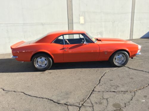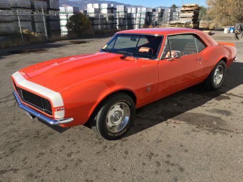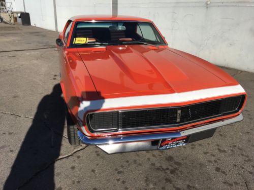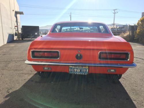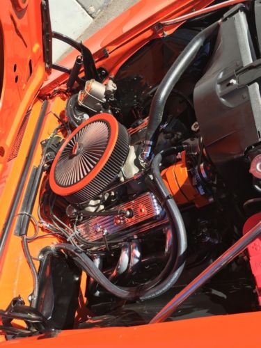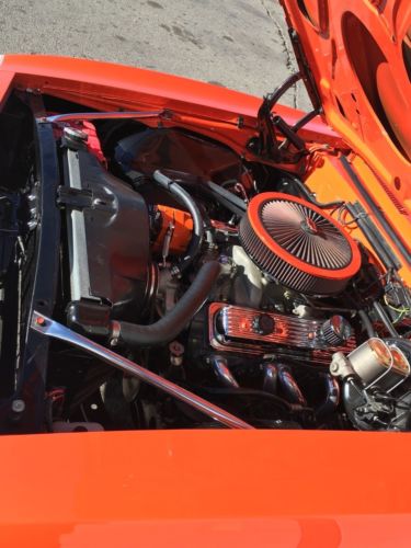 Flawless Hugger Orange DuPont paint (5 coats paint/ 6 coats clear) (original color was dark green), ZZ3 350/ 345HP, 650 Holley double pump, upgraded turbo 350 transmission, disc brakes, 2500 stall converter, 4 core radiator, 373 rear end, custom interior, stock tilt, stock tach, 68 console with aftermarket gauges, Flowmaster exhaust, and brand new tires (old tires were aged) that have 600 miles on them.