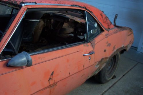 1969 Camaro Hugger Orange with Trim, V.I.N. and hidden numbers are original to the Car, You will be able to apply for a duplicate title as the original title is lost, You will only receive a bill of sale. The cowl/fire wall are in good shape compared to the rest of the Car. There are still some good parts left, But as you can see from the pictures it is heavily rusted, $500.00 is due at end of auction with the balance due within 3 days..Must be picked up within 2 weeks.
