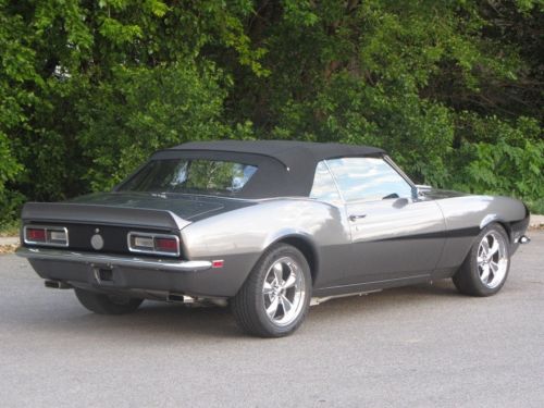 Camaro SS/RS Convertible Pro-Touring. This is a 68 SS/RS Camaro Convertible that has had a complete restoration to the highest pro-touring level. It features an LS-1 engine, four speed automatic transmission, TCI tube subframe, TCI four link rear suspension, Vintage Air conditioning system, rack and pinion power steering, four wheel power disc brakes and an incredible Sirius stereo system. The car is new from top to bottom. Performance is that of a racecar but the car can still be driven comfortably any distance. Please visit mymusclecarmemories.com for dozens of detailed pictures and call with questions. I had the car built by the folks at Muscle Car Memories in Lincoln, NE. It is a great car, but kids take all my time and it needs a new home.