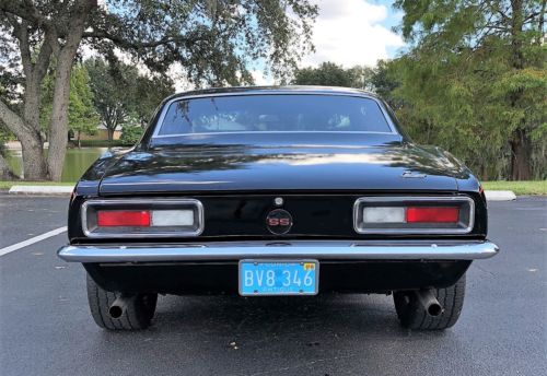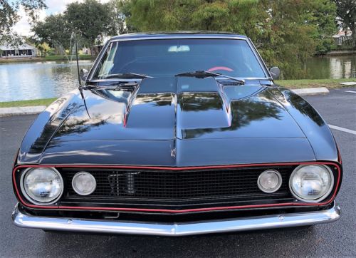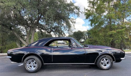This classic Camaro sports black paint with red stripes/accents and black vinyl interior. Chevy's sleek look, newer track engine and modern conveniences make this a fast and fun ride. Paint is in good condition, with some minor blemishes you'd expect on a driver. Interior is extremely clean and enjoyable to ride with air conditioning, power steering and power brakes all added during the rebuild. We've invested much more into the restoration, but wiling to separate for this great price.