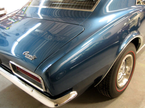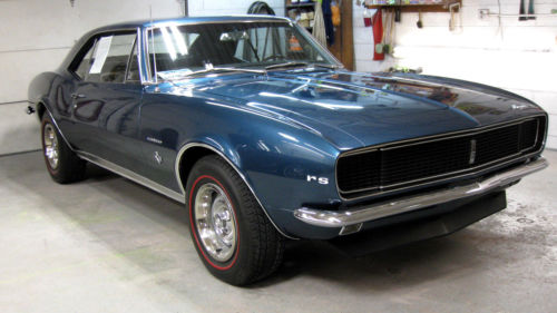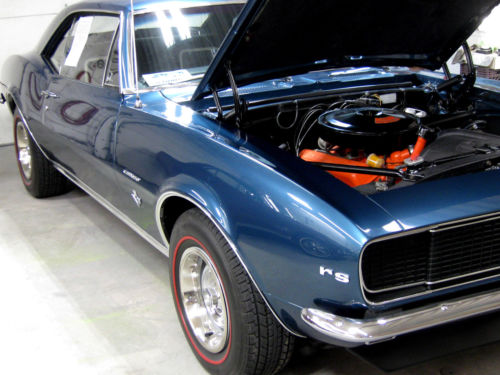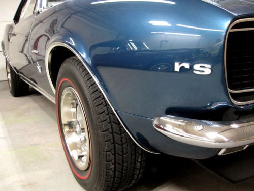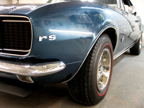 One time RePaint in Original Color (code "L" Tahoe Turquoise) Still Very Slick and Very Straight Original Body Panels. Car was Built 05B(april 2nd week 1967) , still retains it's original 327/275 engine(cast# 3903352)(date code D 21 7), 4-Speed w/Correct Shifter, 12-Bolt Rear w/Traction Arm (axle code QS 0308G1), Power Steering, Original Deluxe Interior, Factory Console, Wood steering Wheel, Tilt Steering Column, Fold Down Rear Seat, Correct Rally Wheels, New RedLine Tires, Correct Spare and Jack. This Camaro is Solid as a Rock W/ Original Floors and Trunk Pans w/ No Rust Issues. Everything Works, including RS Headlight Doors. Runs and Drives Great, No Issues what so Ever!