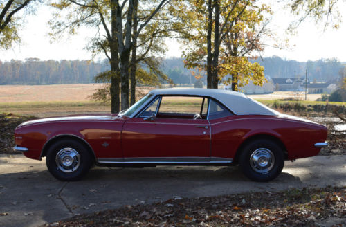 Interested in treating yourself or a loved one to a one of a kind Christmas present? 1st time ever offered here and very reluctant to sell is our true time capsule/1 family owned 1967 chevrolet camaro rallysport two door coupe, Rare red on red color combination with parchment vinyltop and white pin striping, Original red deluxe interior, Early built car assembled in Norwood Ohio and documented with it's original protecto-plate and other items pictured, Found stored away in a dry building since the 1980's and purchased from the estate of the original owner, I replaced the old dry rotted tires which were date coded 1970, The tire shop only had a set of black sidewall tires on hand although we wanted whitewall tires which is what it came new with as they match the white top/stripes and really make the car stand out (Easy swap or a set of rallywheels w/raised white letter tires would look good as well), The original owner had drilled holes in the trunklid as they were in the process of adding a rear spoiler which is included, Purchased brandnew on March 10th, 1967 from Ferman Motor Car Company in Tampa Florida before coming to Knoxville Tennessee where it has remained for most all of it's life, Non original 327ci/2bbl engine w/dual exhaust, 2 speed powerglide automatic transmission, Factory air conditioning all hooked up but does not blow cold, Powersteering, Bucketseats, Console w/floorshift, Working hideaway headlights and still retains both of it's original T3 headlights, Rear backup lights under the bumper work as well along with the horn and all interior lights, Original wheels/wheel covers w/brandnew tires, 1 repaint many years ago back to it's original color of Bolero red (Some nicks and scratches), Solid southern body with very little rust at the very bottoms of the front fender's as well as some slight bubbling under the vinyltop/on the panel between the back glass and the trunklid and some in the trunkpan, Very common for a unrestored 52 year old car all easily repairable or replaceable, Never up and down salty roads or subjected to salty climates, All of the critical areas such as the floorpans, rear framerails, rear shocktowers, rockerpanels, door bottoms, and front subframe are nice, Runs and drives but will need a good once over before driving for any long distance or on a daily basis, Driver's side door hinge needs new bushing's which I have, All original glass is good with no cracks, Some scratches in each door glass and a wiper mark on the windshield, Original interior ie..console, shifter, seats, seat belts, carpet, doorpanels, etc.. Very rare to find a original car like this that still retains most all of it's original components ie..interior parts, under hood components, body panels, etc. which is the way I prefer to find them and even a rarer opportunity to purchase it today in this condition as most have been restored in one way or another, The red/red 67 rallysport cars with the white top/white striping really pop when repainted slick and makes for a beautiful car with the hideaway headlights, Overall a neat father/son/daughter wintertime toy to tinker with and drive as is? Restore back as original? Resto-mod? Racecar? Streetcar? Many possibilities with this one, I do have apersonal delivery driver on standby for immediatedelivery @ $1.00 a loaded mile that can have the car to you with thequickness if you choose to do it that way, Serious inquires only please, Feel freeto contact Paul @ 901-219-9569 with any questions, If no answer pleaseleave a detailed message and I will return your call as soon aspossible, Bank wire transfer preferred for payment and/or cash asit is the quickest and safest method of payment for both the buyer andthe seller, If you cannot follow our payment instructions please lookelsewhere, Sold in as-is condition with a clean clear Tennessee title, Thanks again for lookingand bidding.