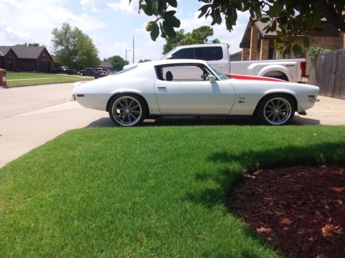 1973 Camaro 350 SBC Victor Heads and Intake, Roller Rockers, 5 Speed Manual Trans. Power Steering. Power 4 Wheel Disc Brakes. 18x8 Front 20x10 Rear New Tires, All New Interior. Just got it out of paint shop the end of August. Less Than 1000 Miles since completion. I will look at trades, really want a Pro Street Car. Call 405-249-o439 for more info. Car goes nowhere until money is in my bank/ Please be serious when bidding