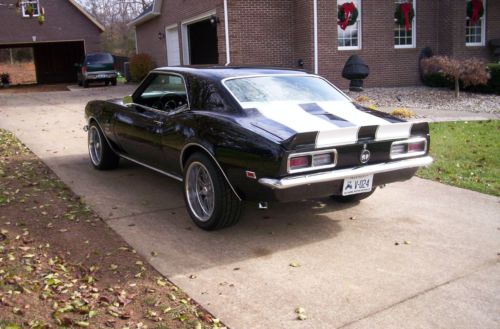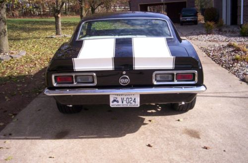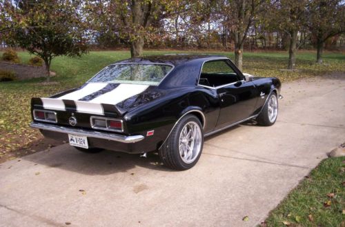 Very clean and fresh restomod, pro built Camaro. High end paint job. Body work impeccable. Excellent condition inside and out. All trim, glass, chrome, carpet, rubber moldings as new. All seats and headliner as new. New springs and shocks, new gas tank, all other underneath components as new. Sitting on new 18" tires and wheels. PS, Power disc brakes, vintage air, auto sound stereo with bluetooth. Everything works. Chevrolet 350 with 700R4 transmission with overdrive.
