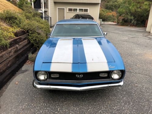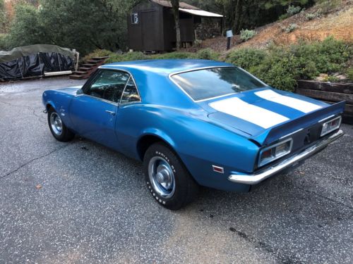 It fires right up and drives, though it has 4 wheel drum brakes so it doesn't stop amazingly well. The doors don't line up perfectly and the rocker panel isn't painted blue. It was replaced and is black. The speedometer doesn't work so the mileage is not accurate. This is not a show car, but it is a 68 Camaro with a big block and 4 spd! Thanks for looking, email with any questions.