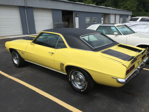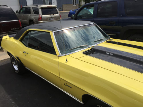 1969 Chevrolet Camaro Z-28, Los Angeles built, real deal Z-28, 4-speed, factory Z-28 quick ratio power steering, tilt wheel, power disc brakes-excellent condition, original 2-piece front rotors in excellent condition, all original body panels including the GM cowl hood, very rare to still have all the original body parts & they all line up & open-close great, emergency brake still works too-very rare, factory Endura front bumper, code 76 Daytona Yellow, code 712 black deluxe interior, non-original big block 396, Muncie 4-speed-code 3831704, 12 bolt 4.10 posi, axle cose QL 12206, vinyl top is in great shape, there is a few bubbles underneath it, runs-looks-drives awesome, light rust on the drivers side rear quarter, paint has had some touch ups-etc., looks like brake fluid stained some of the paint up near where you put the fluid in, there was a slot cut for a fuel cell in the trunk-can be repaired, there is also couple quarter size rust holes in the trunk, the rest of the car is super solid, radio is gone, gas gauge not working, headliner needs replacing, some seat tears, front end has polygraphite bushings, ball joints & alignment were done some time ago too, has Competition Engineering traction bars, it did spend a lot of time on the drag strip, has a new radiatior-fan-distruibutor-wires-battery-ignition-hoses-belts, it's a super solid car that starts right up every time & and is a blast to drive, nothing like a big block 4-speed !!, the prices on these cars are going through the roof, don't miss this opportunity. This car was sold for $15,000.00 on E-bay in 2004. below is an e-mail that seller sent me recently, after I asked him about the car.