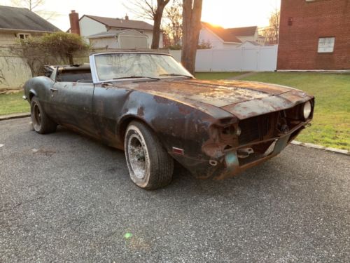 1968 Camaro Convertible, Off The road for last 35 years, Matching 327 4-Speed, Solid Frame and Rear frame rails, And Shock Towers, In need of full resto. Not running. Has 131,000 original miles. Was running when parked. Has power steering. Was original Tripoli Turquoise with back interior and top. Clear title in hand. Car is in Long Island New York 11729, Call Louie 516-721-3951