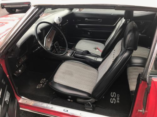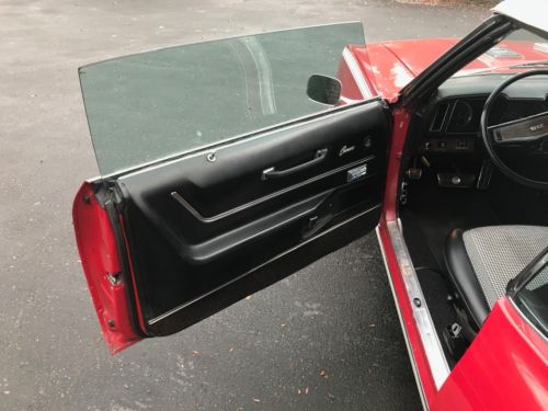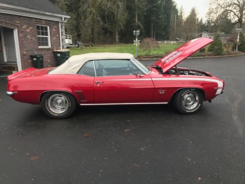This is a great driving 1969 Camaro Convertible. It has power windows, power top, and power steering. It has multi leaf springs for suspension. The engine is a chevy 350 with forged internals as well as an Edelbrock Pro Flow fuel injection system. It runs and drives great. It is painted red with white hockey stick stripes down the side.