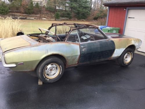 1968 Camaro Convertible original British green and has a manual top, factory 4 speed, cowl induction hood, 14 inch corvette rally wheels.