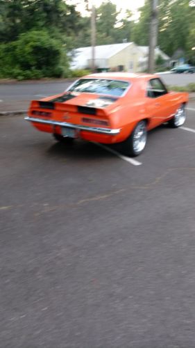 !969 Camaro, I've owned this car over 25 years and I'm going to be as honest as possible.It's not numbers matching, no build sheet, no protecto plate but the title is clear and the vin matches the body stamp. I believe this car spent it's entire life in Oregon based on the blue and yellow plates, i also think it was sold new in Portland at Ron Tonkin Chevrolet but I have no proof.I think it was and is a real Z28, But matters little since it's not a numbers matching drivetrain. Ill go into that later. The trim tag is dated before they started using the X codes to denote the model. It has power disc front brakes, I ground the calipers smooth and Z28 is engraved on the calipers, painted black and orange, single piston, slotted and drilled rotors and new pads. The rear is drum brakes and they stop with no problems. It has the small brake pedal and disc brake pedal trim package with the clutch pedal still installed but tucked under the carpet. Newer master cyl. and newer brake booster.The front suspension was replaced many years ago but very few miles ago, along with new springs, new shocks and ball joints, etc. The rear end is a corporate 10 bolt open rear end with multi leaf springs, an IROQ Z rear sway bar, and a rare rear diff. cover that I ground smooth, polished and clear coated, 3.08 gear ratio. KYB gas shocks. The gas tank was replaced about 7 yrs ago along with the rear bumper. A new Champion radiator was also installed at that time, Champion radiator is large enough to work with air conditioning I hoped to install later but never did. The turbo 350 transmission was replaced and upgraded about 10 yrs ago with a shift kit and 2500 TCI stall converter. B&M ratchet shifter is working good and the kick down is installed and operates as it should. The engine is a 350, 4 bolt main block, bored 30 over, Keith Black pistons, and polished crankshaft, .010 over on the mains and .010 on the rods, Clevite 77 bearings, High volume melling oil pump, windage tray and brass freeze plugs installed. The cam is a Lunati Bracket Master II, double roller timing chain, cast iron "186" heads with hardened seats, 2.02 valves ported and polished and finished with screw in studs, Crane 1.5 roller rockers, H.D. springs, locks and 64cc chambers for 10 to 1 compression. It runs good on pump gas. The intake is Edelbrock R.P.M, Ignition is a M.S.D. billet Distributor, 6AL multi-spark capacitor, 8MM MSD wires. The Holley Street Avenger 670 C.F.M. carb., and electric choke finish the top while aluma coated full length headers feed 2.5" pipes exiting through flow master mufflers and stainless steel tips right behind the rear axle. The interior needs some work, the dash pad is shot, the headliner is in good shape , the sail panels need some work, the carpet was replaced but it's in bad shape again. The front seats were redone with all new foam buns with more support and black naugahyde, They have seat warmers installed but not wired up. The rear seat is in great shape, door panels are old but not to bad and seat belts are rare ( the only set I've seen like them) The windshield is a few years old and the rest of the windows are old but in fair shape.The wiper motor was replaced and works good. The heater, dash lights and gauges work accurately as does the lighter, the tilt wheel is still tight and works good except for the horn. Now for the option codes; 12437=8cyl. sport coupe. RPO Z87= Custom interior. RPO Z21=Style Trim Group. RPO C06=Vinyl roof (when it was new) RPO C50=rear window defroster. RPO ZL2=cowl induction hood. The stereo is a Pioneer deck, 900 watt 5 channel amp. A single Cerwin Vega 10" speaker in trunk, old MB Quarts front speakers (before they sold out and built garbage) and 2 rear speakers in package tray. The stereo works sometimes. Aftermarket gauges include voltmeter, temp and oil pressure under dash. The wheels are Devino 18x8", rear tires are Nexen 245-40ZR18, front tires are Toyo Proxes 235-40ZR18. The paint and body are in rough shape, the trunk floor needs work as well as the quarter panels or a parcel replacement depending on your skills. The windshield frame, cowl and firewall are in good shape, subframe is good and floor pans are decent, the trunk lid and rear spoiler are bad and the tail light panel is dented from a pole. The fenders are useable and doors are dented but not rotten. The cowl induction hood is in great shape. Inner fenders, core support and grill are all in good shape. The car needs a paint job but it's almost 50 years old.