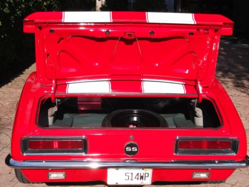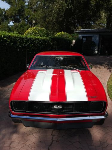This is an awesome 1967 Chevrolet Camaro RS/SS. This stunning muscle car is powered by a 396 cubic-inch, 375 HP that has been upgraded with tons of chrome and aftermarket parts and accessories. Bolted to the motor is a chrome Edelbrock Performer RPM intake manifold with a chrome Quick Fuel Q-Series 750 cfm carburetor, as well as a set of ceramic-coated long-tube Headman headers with Flowmaster 3" header back exhaust system. It also has an MSD ignition/distributor. The alternator, valve covers, and master brake cylinder have been upgraded to chrome, making the engine and compartment beautiful. The iconic red paint with white racing stripes is in excellent condition and looks outstanding in the sun. Aftermarket Center Line racing wheels have also been added to give this Camaro a great look. The inside of this car features a black vinyl/cloth interior that is in excellent condition. Other features of this car include a B&M shifter, cold A/C, AM/FM cassette radio, power brakes, power steering, and tilt steering wheel. Mileage per odometer likely not accurate. I have all the receipts for all parts purchased, also for any work/upgrades that have been done to this Camaro. This 1967 Camaro has been exceptionally cared for and loved by me. You are welcome to contact me and schedule an appointment for viewing.