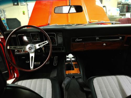 * Engine Management: Motor has been professionally dynoed at a reputable speed shop known for building several professional race cars in Colorado. Dyno sheets can be provided for your inspection. This Camaro can be operated with high octane fuel. New gas lines, hoses, clips, gas tank and fuel tank sender were installed at time of build - Correct exhaust manifold, light weight GM Fly Wheel (allows the motor to rap quicker), correct bell housing, deep grove pulleys, 8" balancer, dated spark plug wires, GM hoses with part numbers, tower clamps, spring ring battery cables, curved neck radiator..Brake booster (309) and master Cylinder, Big Block Radiator, fan shroud, big block heater core, blower motor, rebuilt distributor, 2-Q-69 spark plug wires, spring ring battery cables, vacuum canisters, p