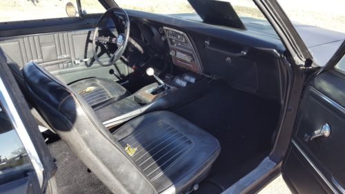 For sale is a 1967 Chevrolet Camaro rally sport. This car is from a collection of camaros that had been in storage for almost 25 years. It had original chevrolet quarter panels installed 20 years ago and just recently the body work was finalised and put in PPG urethane swayed black finish. The engine is original. The four speed muncie M20 is not. The rear axle is original. The odometer reads 107,000 miles. As you can see by the pictures the interior is 90% complete. Does need a headliner. Glass is in excellent condition. There is NO RUST anywhere on this camaro. This car runs and drives. Brakes work great. Below is an itemised list of options and parts that have been replaced within the last 3 months.