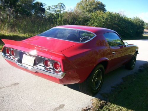 RELISTING DO TO A NON PAYING E BAYER .. If your looking for that "PERFECT" numbers matching SHOW car, Please Keep LOOKING! This car was built to be Driven. Now with that out of the way, Up for sale is a BEAUTIFUL 72 Camaro R/S-S/S 396 big block 4 speed tribute car. It started life in the South (Florida) as a 307 automatic Rally Sport with A/C. It had a 350 with a turbo 350 trany in it when I started on it. It now has a 1972 396 that has been completely rebuilt and is out of a 1972 Camaro, a new flywheel, clutch kit, Starter, Alternator, Speedometer cable, A Completely rebuilt M 20 Muncie 4 speed transmission and the rear end has 3.73 gears with a posi unit. The list of NEW is a LONG ONE. Basically if it moves, it was either replaced or rebuilt. All the break's are new, Rotor's, caliper's, pad's, rear wheel cylinder's, spring kit's, shoes, master cylinder, booster,and all 3 flex hoses. The trunk pan was replaced, as was the tail light panel,1/2 quarter panel's and partial floor panel's. It has new moldings on the windshield and rear window, new header panel, urethane nose ring, new chrome grill ring, new side marker light's, outer door handle's,gas tank and sending unit, it still has a drive shaft loop and frame connectors on it that were installed 20 + years ago. Now for the inside. It's mostly new. new are - seat upholstery front and rear,dash pad, carpeting, head liner, rear sail panel's, lower door panel's, door sill molding's and shifter boot. I'm SURE that I forgot a lot of it. It has a working tachometer, speedometer (I don't think it's accurate) water temperature gauge, volt meter, gas gauge, cigarette lighter, windshield wiper's (new motor) dome light comes on when either door is opened(new door switches)or when the head light knob is turned, even the clock work's, horn beeps, A/C is cold,parking break works, all electrical connections were glass beaded clean to make sure that they make good contact,all light bulb's are new, all switches have been replaced, back up lights come on when the shifter is put in reverse, and new 2 1/2" dual exhaust. Now the thing's that I found not to be working, The A/M radio and the rear window defroster (the blower unit was lost during the build) the car could use a front end aliment as the steering wheel isn't centered. It drives fine. The car's odometer was turned to 000000 so you can keep track of you miles and I've only driven it 1 mile. the engine has run about 1 hour and still has the break in oil in it. Now for the number guy's. The engine block casting # is 3999290, and the date code is A/26/72, head's are 6272292X with date code, Left head E/25/72 and right head E/20/72, intake, 8283769, date A/31/72, carb # 7042220, date K1 EM, distributor, 1112057, date,2A4. The engine is the only thing in the drive train that is 1972. This car was built to be Driven. I'm SURE that I've forgotten a LOT of new things that were put into this car!! I've described this car to the best of my ability. If there is any questions please ask and I will answer them ASAP. Please remember that this is a 47 year old car, not new, I'm selling it to do some much needed home improvements. Car can be seen by appointment only. I have a clean open Florida title in my hand.I'm not a dealer. I reserve the right to end this early as the car is for sale locally, sold as is with no warranties implied. $1000.00 NONREFUNDABLE DEPOSIT IS DO THROUGH PAY PAL IN 24 HOUR'S. WINNING BIDDER IS RESPONSIBLE FOR ALL SHIPPING COST AND ARRANGEMENTS, CAR NOR TITLE LEAVES MY PROPERTY UNTIL I HAVE GREEN AMERICAN CASH IN MY GREEDY LITTLE HAND.
