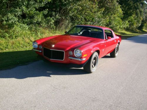 NO RESERVE !!!!! HIGH BIDDER WILL WIN THIS CAR !!!!! RELISTING DO TO A NON PAYING E BAYER .. If your looking for that "PERFECT" numbers matching SHOW car, Please Keep LOOKING! This car was built to be Driven. Now with that out of the way, Up for sale is a BEAUTIFUL 72 Camaro R/S-S/S 396 big block 4 speed tribute car. It started life in the South (Florida) as a 307 automatic Rally Sport with A/C. It had a 350 with a turbo 350 trany in it when I started on it. It now has a 1972 396 that has been completely rebuilt and is out of a 1972 Camaro, a new flywheel, clutch kit, Starter, Alternator, Speedometer cable, A Completely rebuilt M 20 Muncie 4 speed transmission and the rear end has 3.73 gears with a posi unit. The list of NEW is a LONG ONE. Basically if it moves, it was either replaced or rebuilt. All the break's are new, Rotor's, caliper's, pad's, rear wheel cylinder's, spring kit's, shoes, master cylinder, booster,and all 3 flex hoses. The trunk pan was replaced, as was the tail light panel,1/2 quarter panel's and partial floor panel's. It has new moldings on the windshield and rear window, new header panel, urethane nose ring, new chrome grill ring, new side marker light's, outer door handle's,gas tank and sending unit, it still has a drive shaft loop and frame connectors on it that were installed 20 + years ago. Now for the inside. It's mostly new. new are - seat upholstery front and rear,dash pad, carpeting, head liner, rear sail panel's, lower door panel's, door sill molding's and shifter boot. I'm SURE that I forgot a lot of it. It has a working tachometer, speedometer (I don't think it's accurate) water temperature gauge, volt meter, gas gauge, cigarette lighter, windshield wiper's (new motor) dome light comes on when either door is opened(new door switches)or when the head light knob is turned, even the clock work's, horn beeps, A/C is cold,parking break works, all electrical connections were glass beaded clean to make sure that they make good contact,all light bulb's are new, all switches have been replaced, back up lights come on when the shifter is put in reverse, and new 2 1/2" dual exhaust. Now the thing's that I found not to be working, The A/M radio and the rear window defroster (the blower unit was lost during the build) the car could use a front end aliment as the steering wheel isn't centered. It drives fine. The car's odometer was turned to 000000 so you can keep track of you miles and I've only driven it 1 mile. the engine has run about 1 hour and still has the break in oil in it. Now for the number guy's. The engine block casting # is 3999290, and the date code is A/26/72, head's are 6272292X with date code, Left head E/25/72 and right head E/20/72, intake, 8283769, date A/31/72, carb # 7042220, date K1 EM, distributor, 1112057, date,2A4. The engine is the only thing in the drive train that is 1972. This car was built to be Driven. I'm SURE that I've forgotten a LOT of new things that were put into this car!! I've described this car to the best of my ability. If there is any questions please ask and I will answer them ASAP. Please remember that this is a 47 year old car, not new, I'm selling it to do some much needed home improvements. Car can be seen by appointment only. I have a clean open Florida title in my hand.I'm not a dealer. I reserve the right to end this early as the car is for sale locally, sold as is with no warranties implied. $1000.00 NONREFUNDABLE DEPOSIT IS DO THROUGH PAY PAL IN 24 HOUR'S. WINNING BIDDER IS RESPONSIBLE FOR ALL SHIPPING COST AND ARRANGEMENTS, CAR NOR TITLE LEAVES MY PROPERTY UNTIL I HAVE GREEN AMERICAN CASH IN MY GREEDY LITTLE HAND.