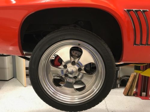All new interior with custom orange houndstooth and premium interior. Including new headliner, seat foam, seat springs, seat belts, new carpet, new door panels, new dash panel. Everything fresh painted, new sound deadening