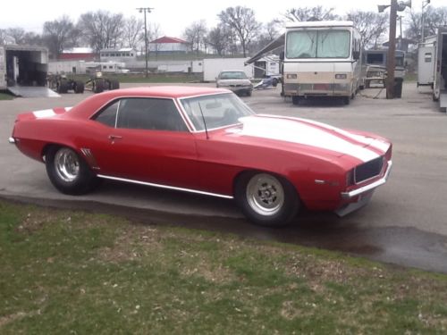 1969 Pro Street Camaro, X11 car, NOT a Z/28. 2x3 Back half chassis, Ladder bar with 2 position QA1 coil overs,9” Ford rear, 35 spline Moser axles, Strange spool and 4:11 gears. Aerospace rear