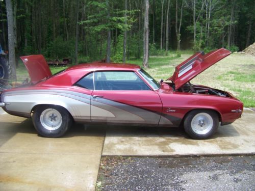 69 Chevy Camaro Z28, 355 motor. Original 4-speed, clutch pedal still there. Full cage, stretched quarters, Ford 9-inch with spool. coilover suspension, car has no rust and is not cut up. All original panels. Car could easily be put back to original .Selling due to injury. Cross listed, seller reserves right to pull at any time