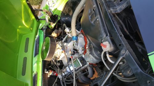 Transmission: Is a turbo 400 with a reverse valve body, and is hooked up to a 10" TCI 4300 stall converter with a TCI fly wheel and is shifted by a B&M ratchet shifter.