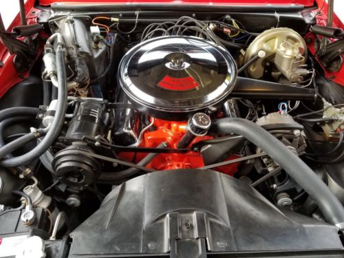 The car is red with gold interior, The seats have adjustable head rest from the factory, and it has upgraded factory A/C and Factory Tilt Steering, Power Steering, Power Front Disc Brakes, 12 Bolt Rear End, and very rare Cruise Control, Under the Hood light and Trunk light. Everything works on this car.