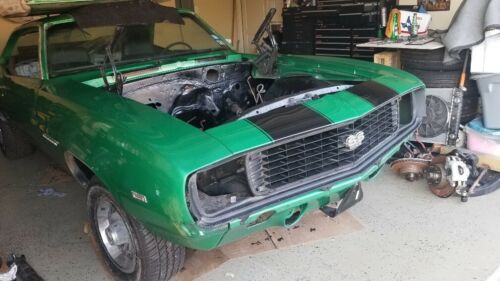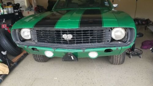 Selling a project 1969 Camaro. This car has been sitting since 2011 waiting for its next chance at life on the road. the body is super solid. No rust. texas car. the front subframe has new polyurethane bushings. the whole car was taken apart. I put the front end on to mock up and take the pictures. I have about 4k in OER parts for it. Solid trunk,floors,rockers, fenders. All glass is good. New door panels, headliner, weather stripping, center console with horseshoe shifter. Rally Green with black interior. the front toe board on floor pans have been replaced back in the day. I POR-15ed the front end and floor pans for added protection. I have the original front disc brakes and a arms for it. it would not take much to be back on the road. all the paneling is just mocked up to illustrate how solid it is. selling as is as pictured. I have it for sale locally as well. any questions feel free to ask. 210-nine00-five807.