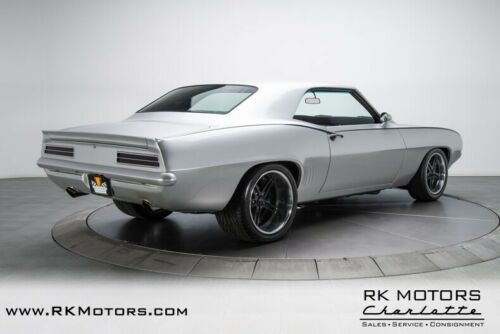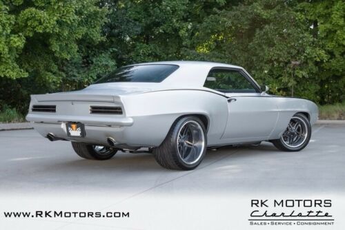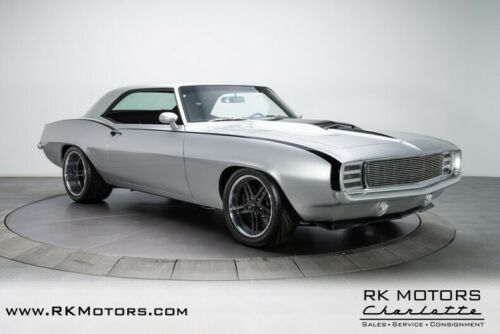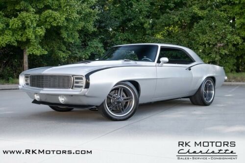 The beneficiary of a detailed, ground-up restoration, this slick Chevy wears a super solid body that's dressed in Bright Silver 2-stage. That polished pigment looks brilliant under flowing side stripes and a sinister Stinger Stripe. Yet despite its heavily customized appearance, the car's trim and ornamentation remain a stylish mix of familiar attributes. Under the hood, 496 cubic inches of rowdy Chevy big block spins 618 dyno-proven horsepower into 557 lb./ft. of dyno-proven torque. Just behind that motor, a tough Tremec 5-speed twists power to a tough GM 12-Bolt that's finished with a posi-traction differential and big, 3.73 gears. That pumpkin pushes a Detroit Speed QUADRALink, which balances a thick sway bar and modern coil-overs opposite requisite mini tubs. At the other end, an upgraded front-clip hangs fluid power steering between a second sway bar, Detroit Speed control arms and a second pair of coil-overs. Four Wilwood calipers squeeze four drilled and slotted rotors. Charred dinosaurs traverse large-diameter, Mandrel-bent pipes, which position an X-shaped crossover between electric cutouts and rowdy Magnaflow mufflers. And power meets the pavement through monochromatic Boyd's blades and BF Goodrich g-Force T/As. Open this Camaro's tight-fitting doors and you'll find a highly customized interior that wraps 21st century style in a nice blend of comfort and convenience. Modern bucket seats complement a recovered factory bench. In front of those thrones, a custom dash frames reliable Faria telemetry and Vintage Air climate control. A tasteful console centers a Keisler TKO shifter in front of modern Alpine audio. And the driver spins an attractive Billet Specialties Draft Wheel around a polished, tilting column. If a run-of-the-mill Chevelle or Nova simply won't do, this high-quality resto-mod is your perfect solution! Call, click or visit for more information.