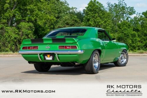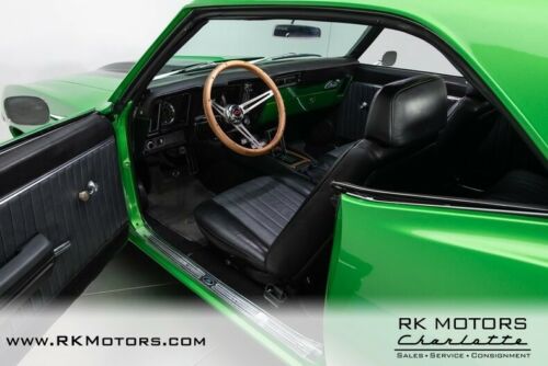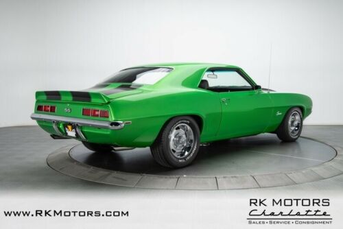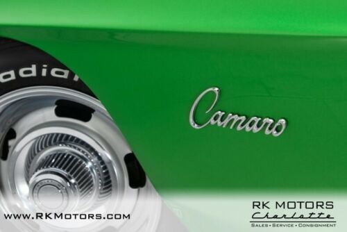 The beneficiary of a frame-off, nut-and-bolt restoration that relieved it of drab Dover White digs, this solid F1 presently sports a vivid coat of Synergy Green sheen that's accented by Metallic Black Rally Stripes. Pop the Cowl Induction Hood and you'll find 350 cubic inches of proven Chevrolet small block that's been bored .030 over. That buff mill twists a dressed Turbo-Hydramatic 350 3-speed, which spins a 10-bolt rear axle. Beneath that drivetrain, a lowered suspension employs 2-inch drop spindles in front of 2-inch blocks. Turns come courtesy of factory-style power steering. Stops are provided by power-assisted discs and drums. And torque transitions to the pavement through stainless-trimmed Chevrolet Rally Wheels, which spin 215/65R15 BF Goodrich Radial T/As in front of 255/60R15 BF Goodrich Radial T/As. Swing this Camaro's solid doors and you'll find a heavily customized interior that wraps a nice blend of classic style and modern convenience around plush leather seats. A green-laced dash hides quality Painless Wiring behind rebuilt telemetry, Vintage Air climate control and direct-fit audio that bumps five Kenwood speakers. At the base of that dash, a factory console centers a handy horseshoe shifter behind factory accessory gauges. And in front of the driver, a classy Rosewood steering wheel laps a tilting column. Looking for a super cool resto-mod that'll provide years of good looks and great times? Call, click or visit today!