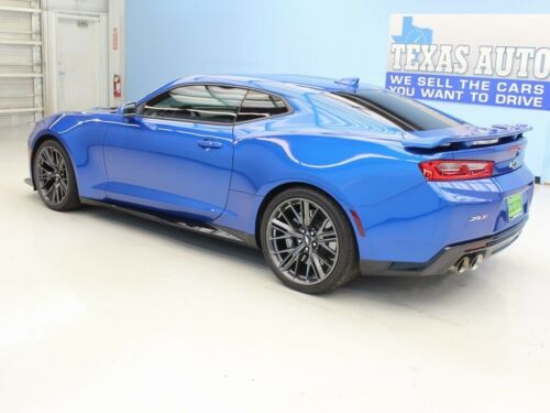 2017 CHEVROLET CAMARO ZL1 SUPERCHARGED 640 HP 10-SPEED AUTOMATIC 6.2L V8 F. BEAUTIFUL ONE OWNER BLUE (HYPER BLUE METALLIC) EXTERIOR WITH BLACK LEATHER/SUEDE INTERIOR. LOADED WITH POWER, MEMORY, HEATED AND COOLED LEATHER SEATS, 10-SPEED AUTOMATIC TRANSMISSION WITH TIPTRONIC SHIFTING AND PADDLE SHIFTERS, ZL1, SUPERCHARGED, 640 HP, NAVIGATION, REAR-VIEW CAMERA, KEYLESS GO, BLUETOOTH, HUD (HEADS UP DISPLAY), MYLINK, BLIND SPOT DETECTION, REMOTE START, SUEDE HEATED STEERING WHEEL WITH CONTROLS, DIGITAL INFO DISPLAY, DUAL CLIMATE CONTROL, TEMP/COMPASS GAUGES, PDR (PERFORMANCE DATA RECORDER), DRIVE MODE SELECT, TRACTION CONTROL, UNIVERSAL HOME LINK, CRUISE CONTROL, PARK ASSIST, 20" ALLOY RIMS, BREMBO BRAKES, LED RUNNING LIGHTS, XENON LIGHTS, QUAD EXHAUST, IN-DASH CD PLAYER/AUX/USB/BLUETOOTH/SAT RADIO WITH BOSE SOUND SYSTEM, AND MUCH MUCH MORE.