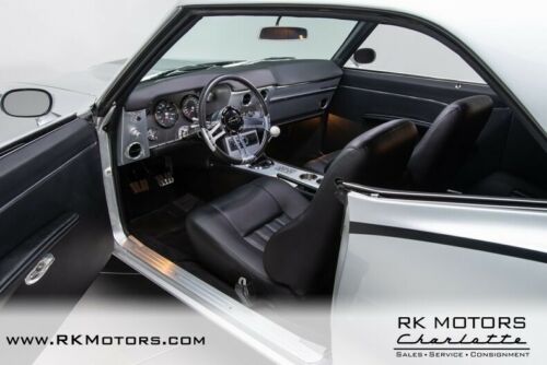 The beneficiary of a detailed, ground-up restoration, this slick Chevy wears a super solid body that's dressed in Bright Silver 2-stage. That polished pigment looks brilliant under flowing side stripes and a sinister Stinger Stripe. Yet despite its heavily customized appearance, the car's trim and ornamentation remain a stylish mix of familiar attributes. Under the hood, 496 cubic inches of rowdy Chevy big block spins 618 dyno-proven horsepower into 557 lb./ft. of dyno-proven torque. Just behind that motor, a tough Tremec 5-speed twists power to a tough GM 12-Bolt that's finished with a posi-traction differential and big, 3.73 gears. That pumpkin pushes a Detroit Speed QUADRALink, which balances a thick sway bar and modern coil-overs opposite requisite mini tubs. At the other end, an upgraded front-clip hangs fluid power steering between a second sway bar, Detroit Speed control arms and a second pair of coil-overs. Four Wilwood calipers squeeze four drilled and slotted rotors. Charred dinosaurs traverse large-diameter, Mandrel-bent pipes, which position an X-shaped crossover between electric cutouts and rowdy Magnaflow mufflers. And power meets the pavement through monochromatic Boyd's blades and BF Goodrich g-Force T/As. Open this Camaro's tight-fitting doors and you'll find a highly customized interior that wraps 21st century style in a nice blend of comfort and convenience. Modern bucket seats complement a recovered factory bench. In front of those thrones, a custom dash frames reliable Faria telemetry and Vintage Air climate control. A tasteful console centers a Keisler TKO shifter in front of modern Alpine audio. And the driver spins an attractive Billet Specialties Draft Wheel around a polished, tilting column. If a run-of-the-mill Chevelle or Nova simply won't do, this high-quality resto-mod is your perfect solution! Call, click or visit for more information.
