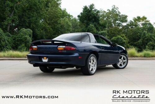 Garaged and pampered since rolling off GM's Sainte Therese, Quebec assembly line, this awesome Camaro spent its early life in the skilled hands of a GM technician. Its current North Carolina owner, who found the car while living in Michigan, had originally set his heart on a second generation F-Body. But once he and his wife stumbled upon this documented coupe, they decided it was simply too nice to pass up! Knowing how hard it's becoming to find a clean 4th gen Camaro, especially a top-option SS, he decided to make the purchase without even haggling. But, unfortunately, a relocation has left them with no room for their modern classic. Under the SLP-supplied bonnet, a Gen III LS1 V8 twists a solid 325 horsepower into 350 lb./ft. of Kansas-flat torque. Behind that spry engine, a slick-shifting Borg Warner T56 6-speed spins a torsen differential around sporty, 3.42 gears. Power rack-and-pinion steering leads an SLP-tuned double A-arm front and 3-link rear suspension. Braking is provided by four power-assisted discs. Spent gases float through aftermarket exhaust, which pairs large-diameter pipes with high-flow catalytic converters and an aggressive muffler. And mirrored, ZR-1-style wheels spin original 275/40ZR17 Goodyear Eagle F1s. Between the doors, fresh buckets electronically adjust six ways for the driver while a Comfortilt steering wheel sports convenient thumb toggles for Cruise Control and an awesome Monsoon sound system. The instrument panel is a familiar and legible GM layout that features a built-in Driver Information Center next to a large tachometer and sweeping speedometer. And at the floor, an optional Hurst short-throw shifter surfs a small console. Looking back on the long history of the F-Body, there's little doubt that this SS is one of the fastest, best-handling and most enjoyable Camaros of all time. Call, click or visit for more information!