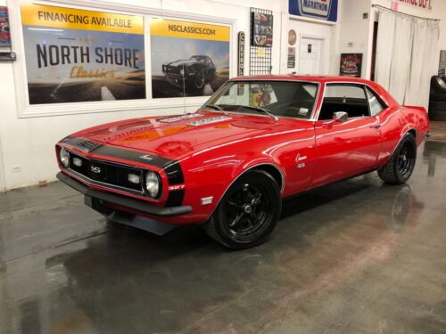 1968 Camaro SS Resto-mod *Rebuilt 327 engine bored .030 over, 300 HP, double hump heads, TRW pistons, steel crank, Edelbrock polished aluminum intake and carb. Dillon aluminum radiator w/electric fan, dress up pulley kit, chrome alternator, water pump, power steering, master cylinder, booster & valve covers. Ceramic coated headers and Magnum Flow mufflers. 700R4 automatic trans, 12 bolt rear, tubular upper/lower control arms, shocks, bushings, ball joints, tie rods, steering sector. BMR 2 lowering springs front, Detroit Speed 3 lowering leaf springs rear, sub-frame connectors. American Racing Wheels with BF Goodrich meats. 4 wheel disc brakes, new fuel tank, fuel/brake lines. New American Auto wire harnesses, front bucket seats & cover on rear seat, headliner, wood grain SS steering wheel, Dakota Digital VHX gauges w/GPS speedo, Custom Autosound USA-740 radio, speakers. Painted Viper Red w/wrap around Camaro graphic painted onto the front. Digi-tail LED marker and rear tail lights. Inbound to dealership- i can send pics by request for now