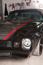 As per the pictures we upgraded the aesthetics by smoking the parking lamps and tail lights. For the paint job we went black with grey metallic stripe on the hood and trunk and a single bright red accent stripe. We faded the grey to give it depth. All this is paint (no stickers/decals), and then clear coated all at once. This is a really high quality paint job. We have never seen this type of modern paint job on an 81 Camaro.