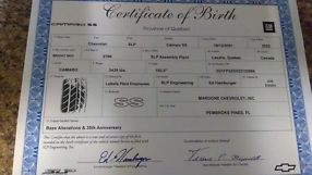 sticker, SLP alteration sheet, birth certificate, and title for this car. The
