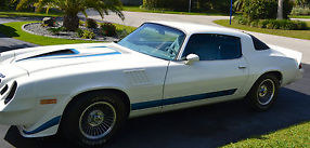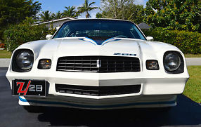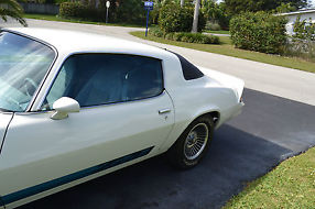 An all stock 1979 Z-28 with just over 59,500 miles. It has one correct re-paint. All original sheet metal, floors, and trunk pan. Never any rust or damage. Straight body with perfect panel alignment and gaps. New correct Stripe Kit from Phoenix Graphics. Code 11 white exterior with 24b deluxe cloth interior. Engine: RPO Z28: 350CI H.O. V8. Code MX1: Heavy Duty Turbo Hydramatic 3 Speed Transmission. Rear: Code PY 3.42 Posi-traction. 100% all numbers and date codes match throughout with original build sheet. 17 Factory Options: Soft Ray tinted-glass, power windows, color keyed front and rear floor mats, roof drip molding, rear window defogger, four seasons air conditioning, limited slip rear axle, cruise control, tilt steering column, spare tire-stowaway, cast aluminum wheels, auxiliary lighting group, heavy duty battery, dual horns, AM-FM stereo, rear speaker, and dealer installed rear window louvers. Many new parts including; rebuilt carb and trans, new trans lines, new radiator, all new hoses, new heater core, motor heads rebuilt, new cam and bearings, new lifters, new oil and filter pumps, new water pump and thermostat, engine block inspected with all new gaskets and seals, new timing chains, new motor mounts, new belts, rebuilt air conditioning compressor switched to R34, new calipers, brakes, and wheel cylinders, 4 new tires, detailed engine compartment and undercarriage, quartz movement clock, and all fluids have been changed.