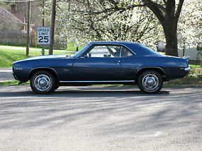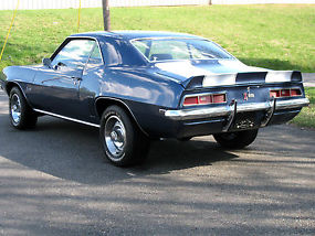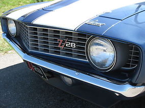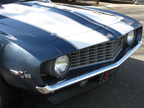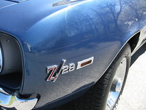 FOR SALE : 1969 CAMARO Z/28 X77 D80 CODE. IT HAS BEEN in a PRIVATE COLLECTION for THE PAST 15 YEARS or so in NORTH CAROLINA. THIS CAMARO HAS NEVER HAD A FRAME OFF RESTORATION ,just a MINOR RESTORE w/ new PAINT, CHROME,etc.. CORRECT ORIGINAL THINGS LIKE: DUAL EXHAUST PLATE on L REAR RAIL, BRAKE SPLITTER ON LEFT FRAME RAIL, SPEEDO CABLE COMES THRU FIREWALL in CORRECT LOCATION, ORIGINAL COWL TAG, THE ORIGINAL vin# STAMP under cowl panel on FIREWALL is THERE and VISIBLE.. ONLY HAD BOTH QUARTER PANELS REPLACED MANY YEARS AGO BUT WITH FULL GM PANELS, THE SPECIAL AIR INDUCTION HOOD ADDED @ SOME POINT SINCE X77 Zs WOULD HAVE MOST LIKLEY had a FLAT HOOD (looks like a GM HOOD). ALL OTHER PANELS LOOK ORIGINAL and VERY SOLID NO RUST. FLOOR PANS AND TRUNK PANS LOOK ORIGINAL and ARE SOLID as a ROCK ,RUST FREE! THE CORRECT (code 51) DUSK BLUE LOOKS TO BE 15 TO 20 YR OLD but STILL SLICK and BODY STRAIGHT as an ARROW! THE INTERIOR is CORRECT (code 715) BLUE and LOOKS MOSTLY ORIGINAL EXCEPT CARPET LOOKS NEW ,HEADLINER and DASH PAD look NEW , AND REST of INTERIOR LOOKS VERY GOOD.