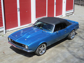 1968 Chevrolet Camaro convertible. 70361 original miles. 160 miles since complete rebuild/restoration. Engine: all aluminum 540 with aluminum World Products four bolt block, AFR 335 square port heads. Holley H.P. self learn fuel injection. Jesel shaft style rockers and timing belt. Scat crank and rods. March pulley set. Moroso aluminum water pump. Canton Corvette road race pan. M.S.D distributor and 6al ignition box. Comp cam and hydralic lifters (no adjustment required). S.P.I. front damper. K+N air cleaner. Accusump oil reserve. Powermaster 140 amp alternator. M.S.D. high torque starter motor. Engine will run on pump gas and was dyno tested to 680 horse power ( dyno sheet available). Transmission is a Richmond gear 6speed with Lakewood blowshield, Long shifter, Mcleod dual disc clutch, aluminum flywheel and hydralic release bearing. Also, in no particular order: BeCool 1000 hp radiator with twin Spal 13 inch fans. Inland Empire 3.5 inch aluminum drive shaft with dual saftey loops.Tubular Automotive custom made headers. Exhaust is 3.5 inches from front to rear, starting as 3.5 inch round transitioning to 3.5 oval (for clearance) and then back to 3.5 round to exit. Mufflers are Spintech stainless steel street mufflers with Magnaflow bullets at rear. Complete exhaust is ceramic coated in and out. Exhaust sounds great without being "painful" and is 100% inspectable. 22 gallon Fuelsafe fuel cell. Dana 44 aluminum independant rear axle from C4 Corvette with positraction. VB+P adjustable trailing arms and camber adjustment rods have heim joint ends. Colman adjustable sway bars are hollow tube with splined ends, aluminum arms and heim joint links. ALL heim joints have rubber seals for street use. Front aluminum control arms (with nylon bushings) and spindles are from a C4 corvette. C4 corvettes use a cartridge bearing in the front spindle that does not hold up to extended track use. A custom spindle was made by Colman to allow the use of late model Impala taper bearings that are four times more durable than stock Corvette design. Front subframe is square tube stock fabricated by Wayne Dues with A.G.R. quick ratio rack and pinion. Weld in subframe connectors. Tie rods are heim joints. Brakes are Wilwood 14 inch drilled and slotted rotors front and rear. Front has aluminum hats. Rear has steel hats with integral emergency brake (required to pass inspection). Lokar emergency brake handle and throttle pedal. Stainless steel braided brake hoses. Hydratec hydralic brake booster. Wilwood master cylinder. Wilwood billet aluminum calipers, 6 piston front, 4 piston rear. Hurst line lock. Wilwood proportioning valve. Qa1 adjustable shocks.Detroit speed mini tubs and wiper motor. D.O.M. roll cage. Wheels are CCW (Complete Custom Wheels) 19x9 front and 19x11 rear with Nitto 255 35zr19 front and 305 30zr 19 rear tires. The wheels were custom made for this car.This is a streetable wheel and tire combination but was chosen for durability on a road course. Custom dash panel with Autometer speedometer and tachometer and 7 gauges. Holley air fuel gauge. Grant steering wheel. Flaming river stainless tilt steering wheel. Fiberglass 4 inch cowl hood. Recaro front seats with matching rear. New door and side panels, rug, floor mats, bumpers, and window and door seals. New top and top boot. G-Force 5 way saftey harnesses. All lines and hoses (except radiator) are stainless steel or aluminum. New complete wiring harness. All hardware is stainless where applicable. Car has radio and heater delete. Heater box and controls are included in sale price. All wiring for radio and amp is installed including circuit breaker for large amp. Car was made in Los Angeles. Body was completely stripped and media blasted then painted Lemans blue with Dupont paint. Underside and painted parts are painted with Dupont Imron satin black. This car is 100% street legal and inspectable and can be driven in traffic on a 90 degree day if so desired. The best of both worlds, a unique, high performance street car that can survive on a road course/ race track. P.S . Although there is no build sheet this car is an original big block ss. I base this on the fact that the heater core was factory relocated for engine clearance and the fenders had ss emblems when I bought the car in 1981.