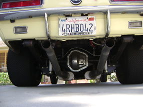 Engine is a 11:1 compression 406 SBC with AFR 220 heads. It has a Dart SHP block with a Scat rotating assembly (4.125” bore X 3.80” stroke). The crank is a Scat light weight forged which cost $1200 by itself. The rods are Scat H-Beam rods with Mahle forged pistons. It has a Comp mechanical street roller cam with around .600 lift and 250 duration @ .050”, and Comp pushrods. It has new Howard pressure fed mechanical roller lifters with new AFR 220 heads with titanium retainers, AFR stud girdles, and Harland Sharp roller rockers (1.6 intake/1.5 exhaust). ARP studs and bolts are used throughout the motor. The new intake manifold is a World Motown and the carb is a Holley Ultra 950 Aluminum HP Carb. The heads and manifold have not been modified. The ignition system is all Mallory. The water pump is an electric Meziere and the large radiator is a Griffin. The motor stays around 180 degrees all the time. All the Earls AN fittings and steel braided lines are real, including the #16 radiator hose lines. Some of the rear fittings by the gas tank are XRP. The fuel pump is a Mallory and the car has a 10 gallon fuel tank in the trunk. The Optima battery is also in the trunk. The exhaust system includes 1 7/8” Stahl headers with 3 ½” collectors and 3” pipe going all the way to the back. The car has two sets of mufflers to keep it quiet including two 3” bullet mufflers in the front and two 3” flowmasters in the back.